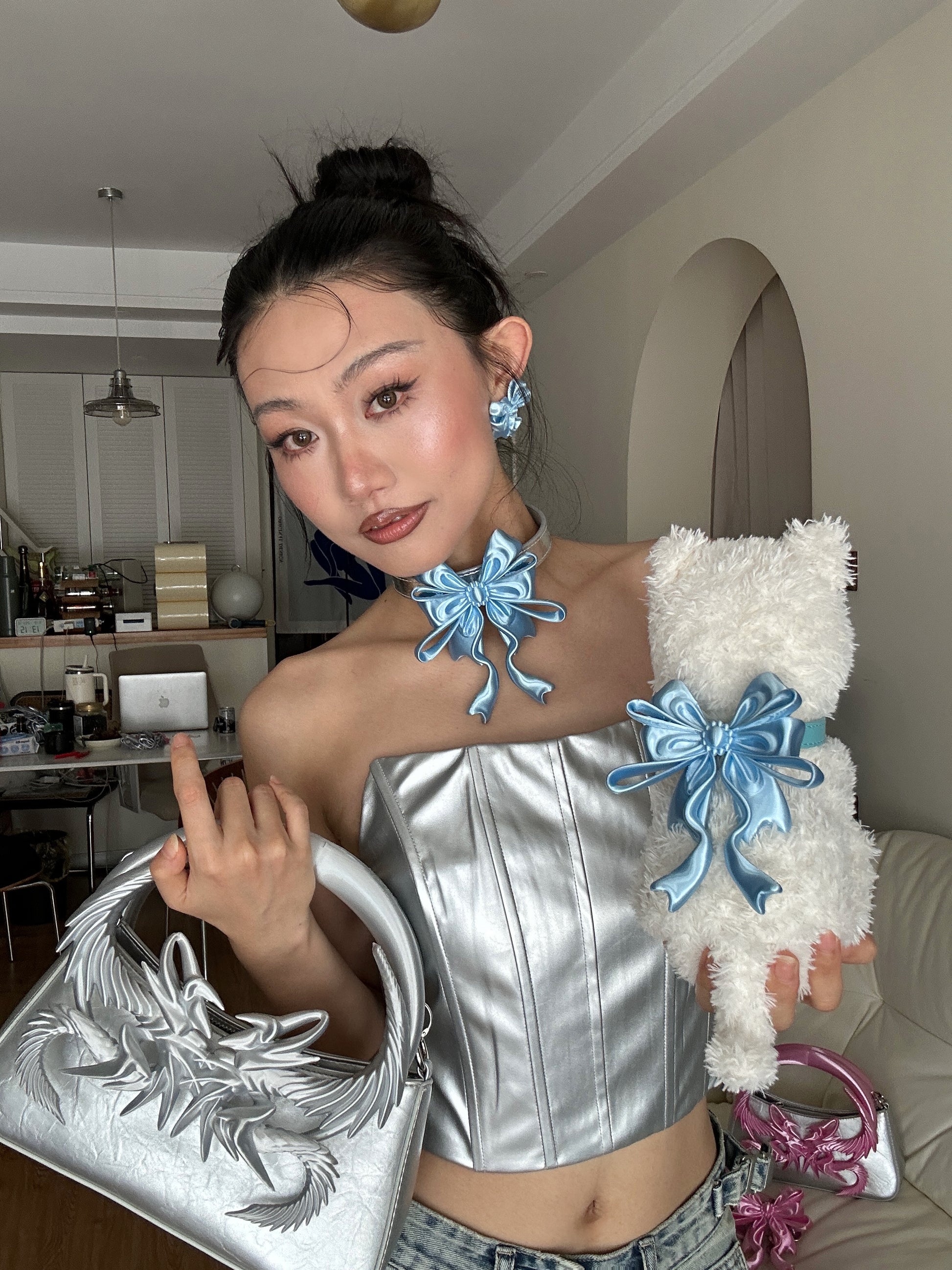 YALA.Lab | 3D Printed Cyber Mantis Handle Bag - Futuristic Tech Sensation Y3K Bag • Silver Handle Bag