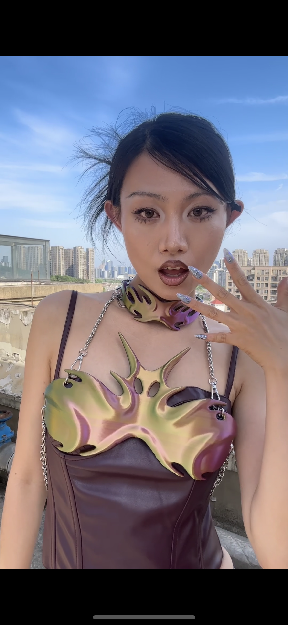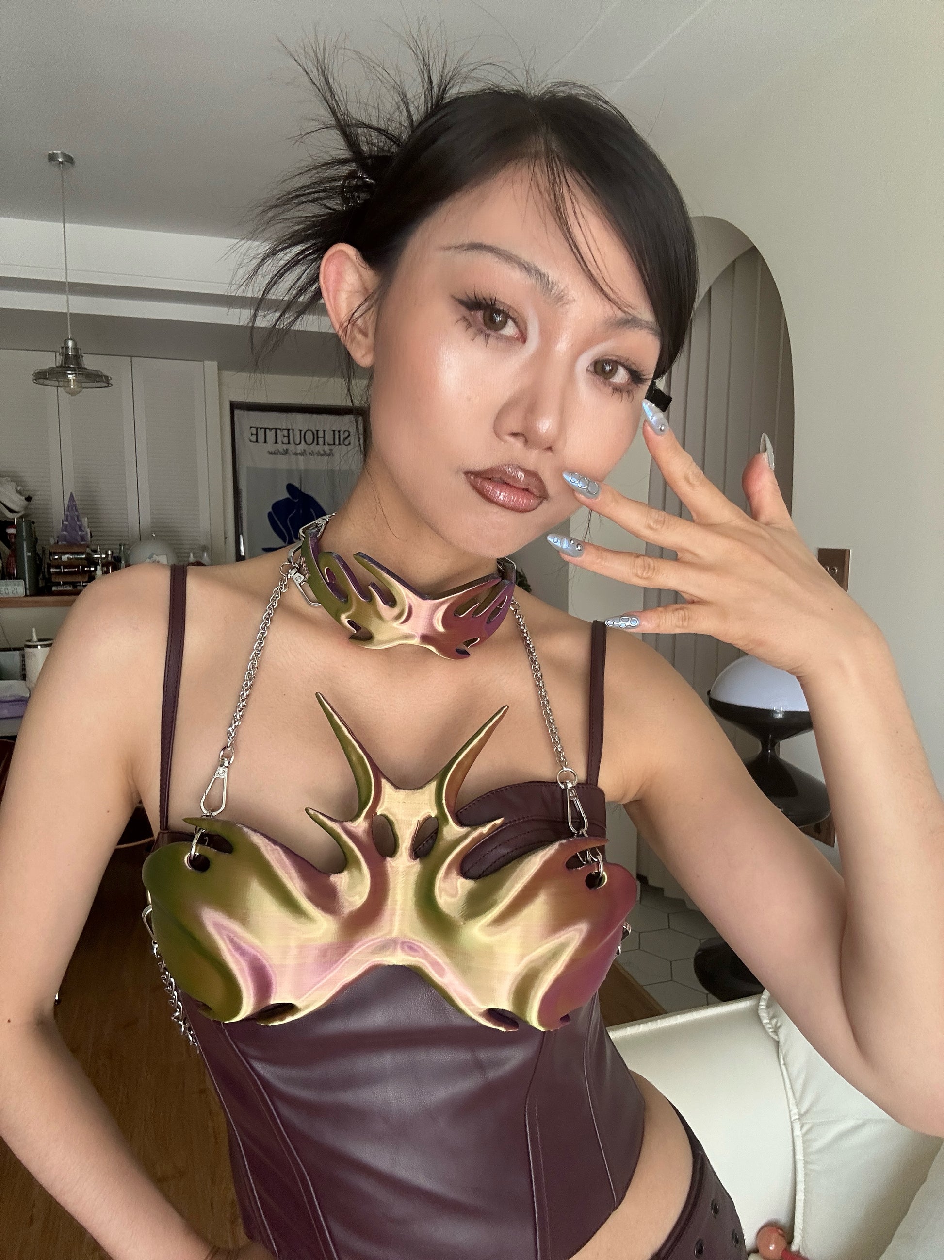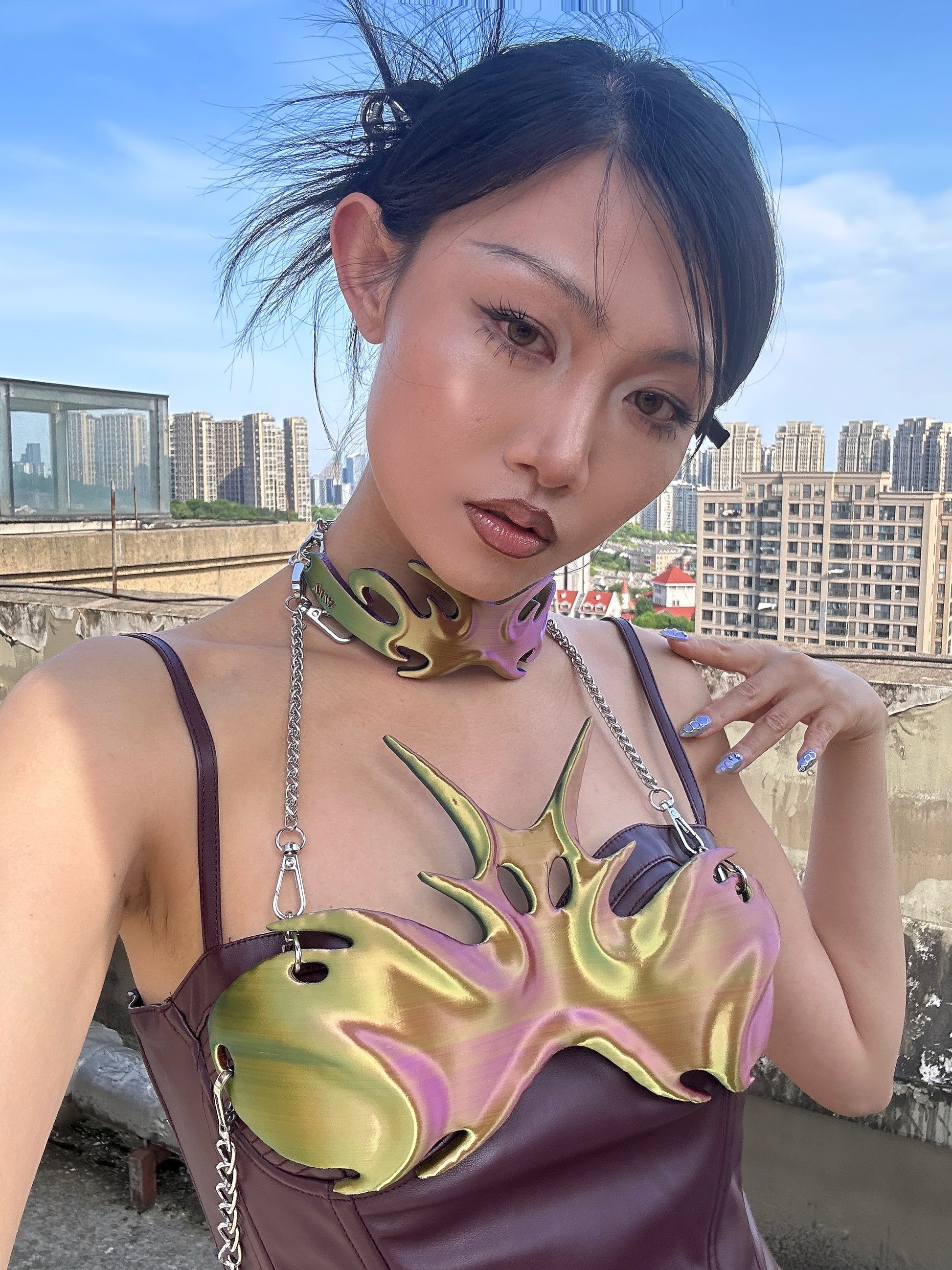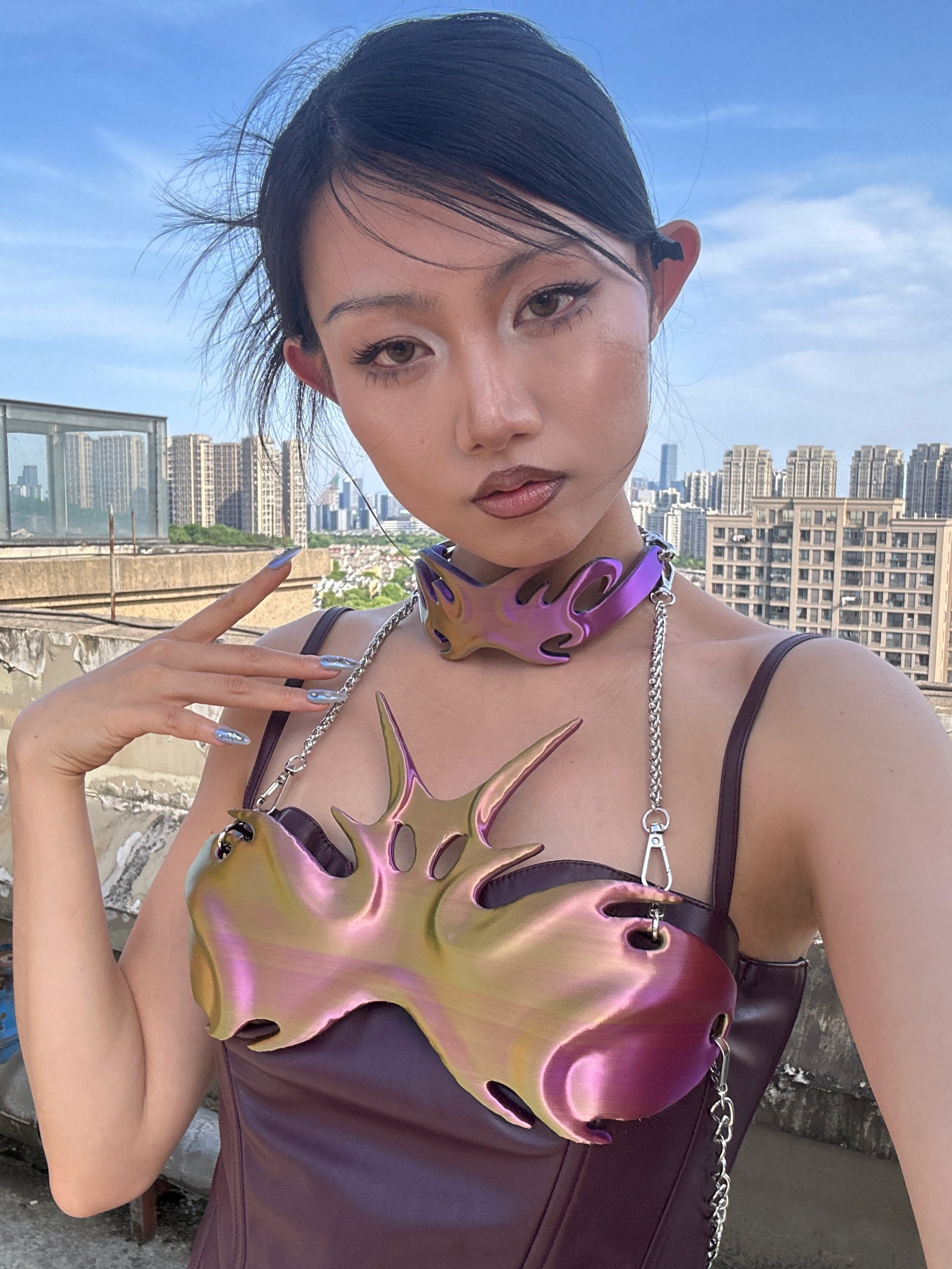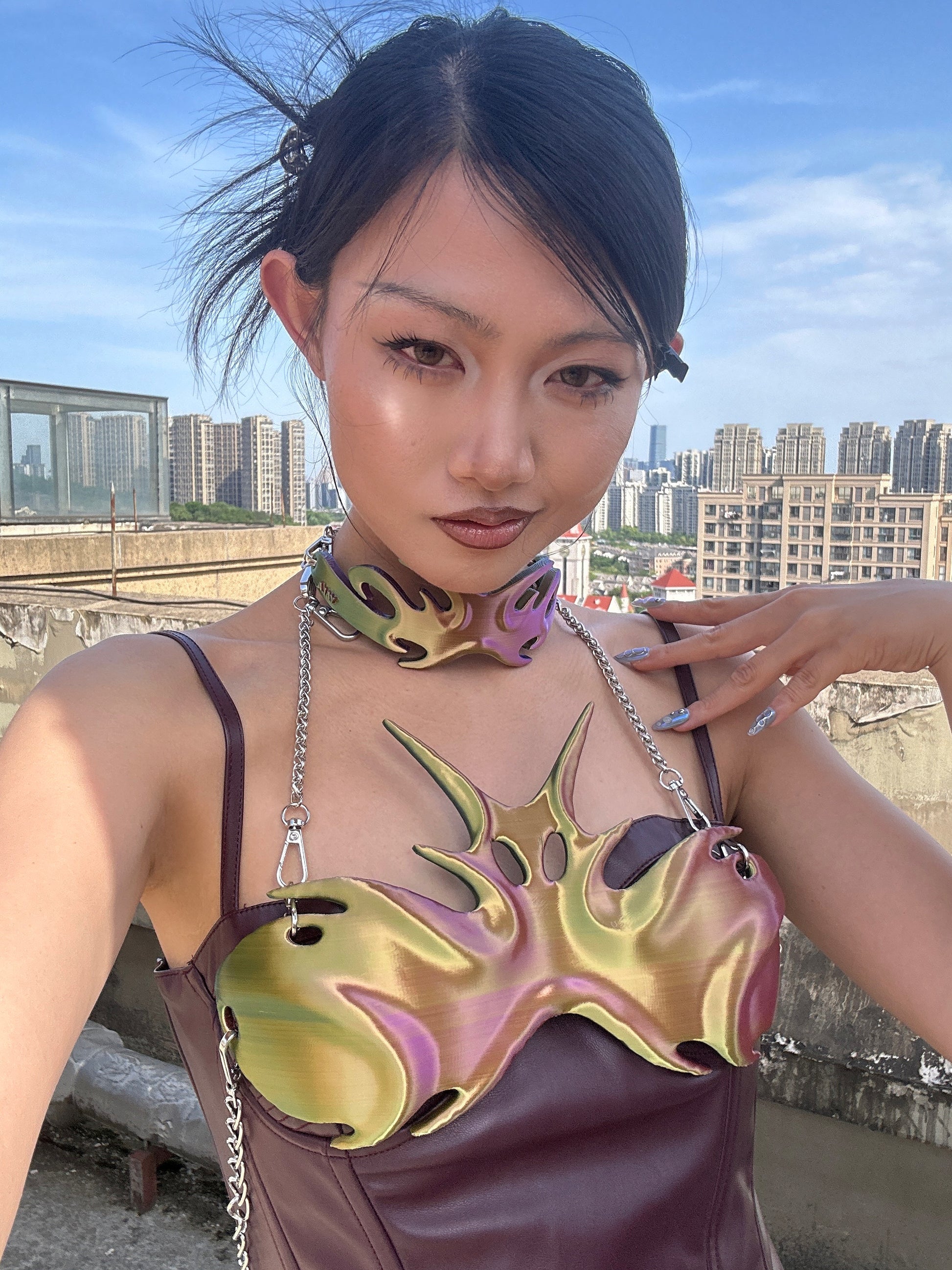 YALA.Lab | 3D Printed Futuristic Mech-Jin Tech-Spangled Chameleon Armor Choker Set