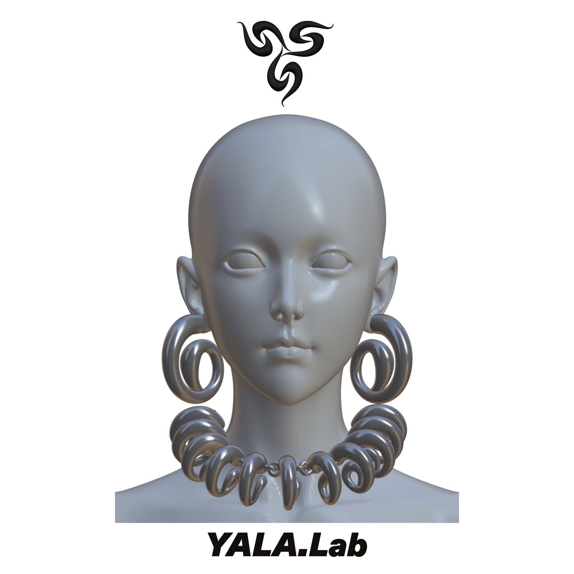 YALA.Lab | 3D Printed Futuristic Y3K Cool Girl Necklace and Earrings Set. Silver Necklace