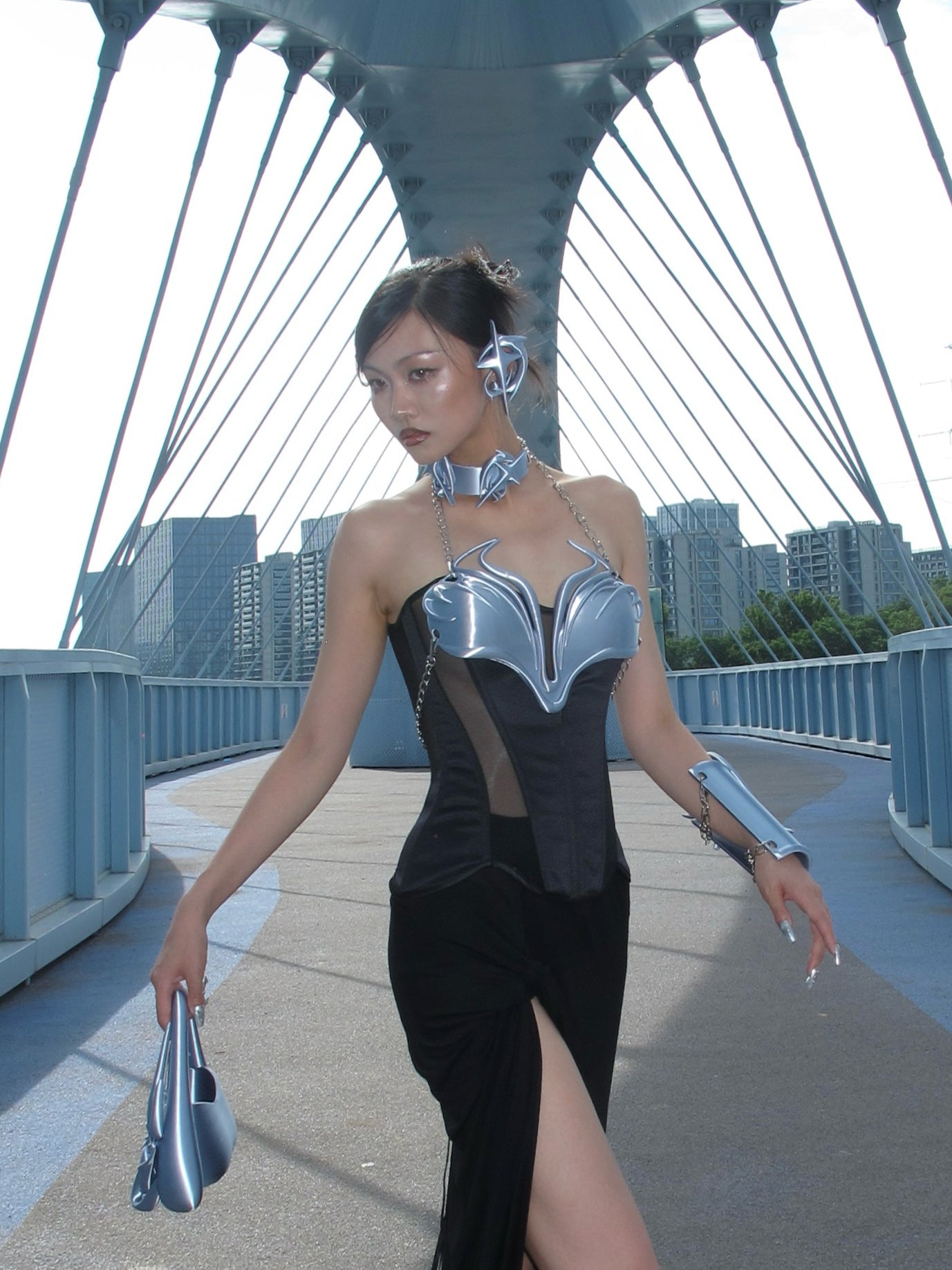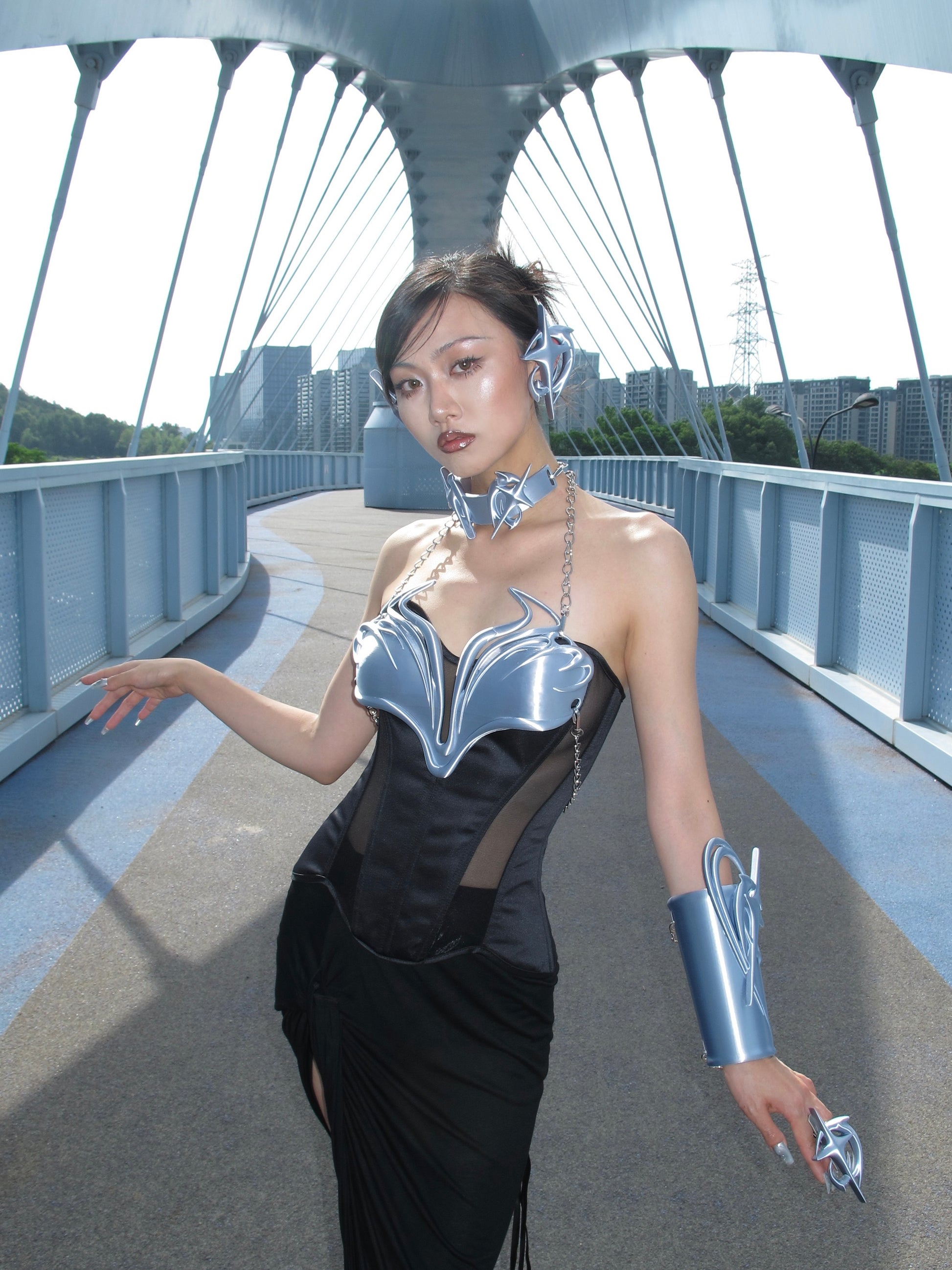 YALA.Lab | 3D printed tetrahedron futuristic tech-themed electronic Y3K girl accessory
