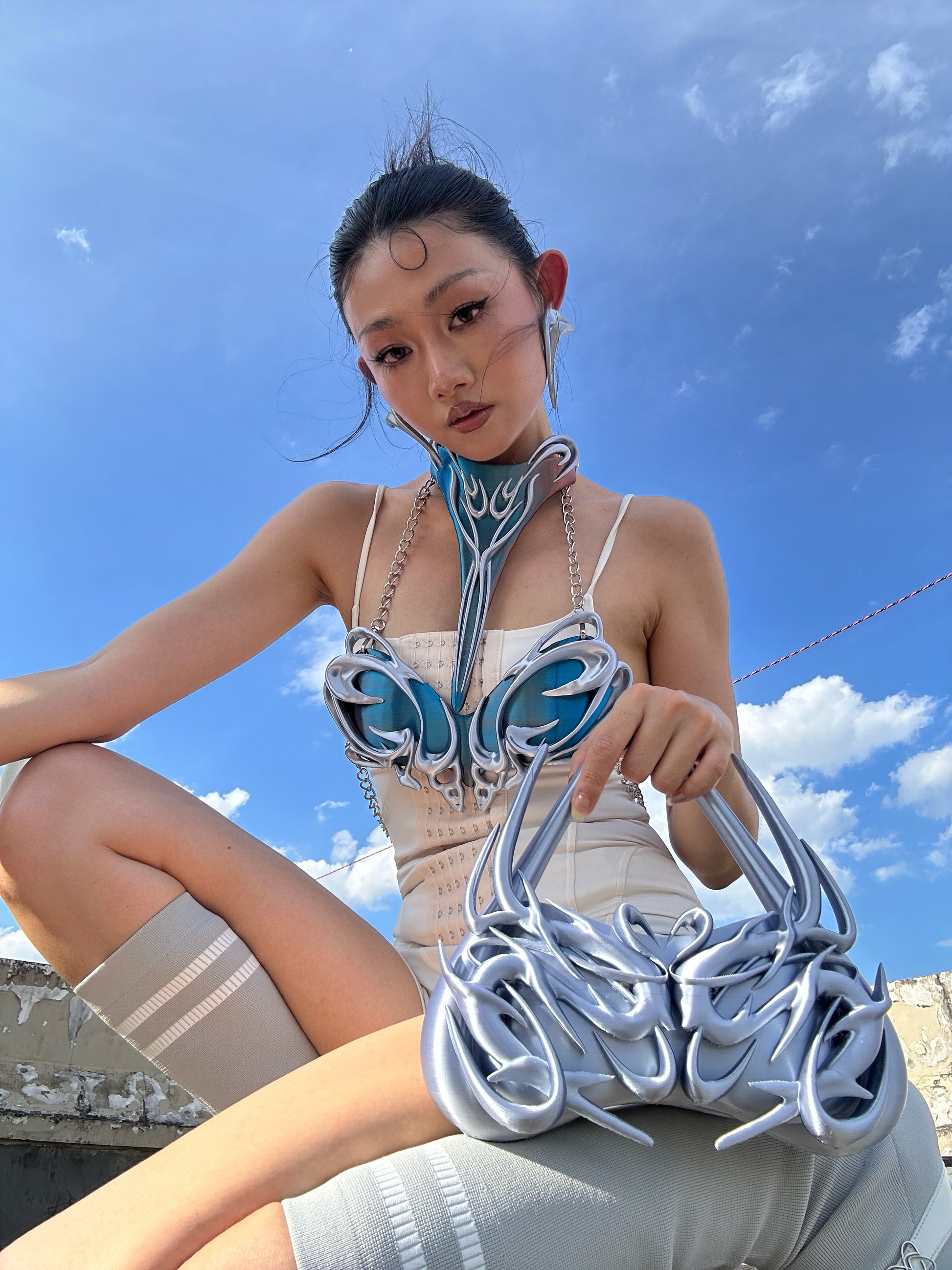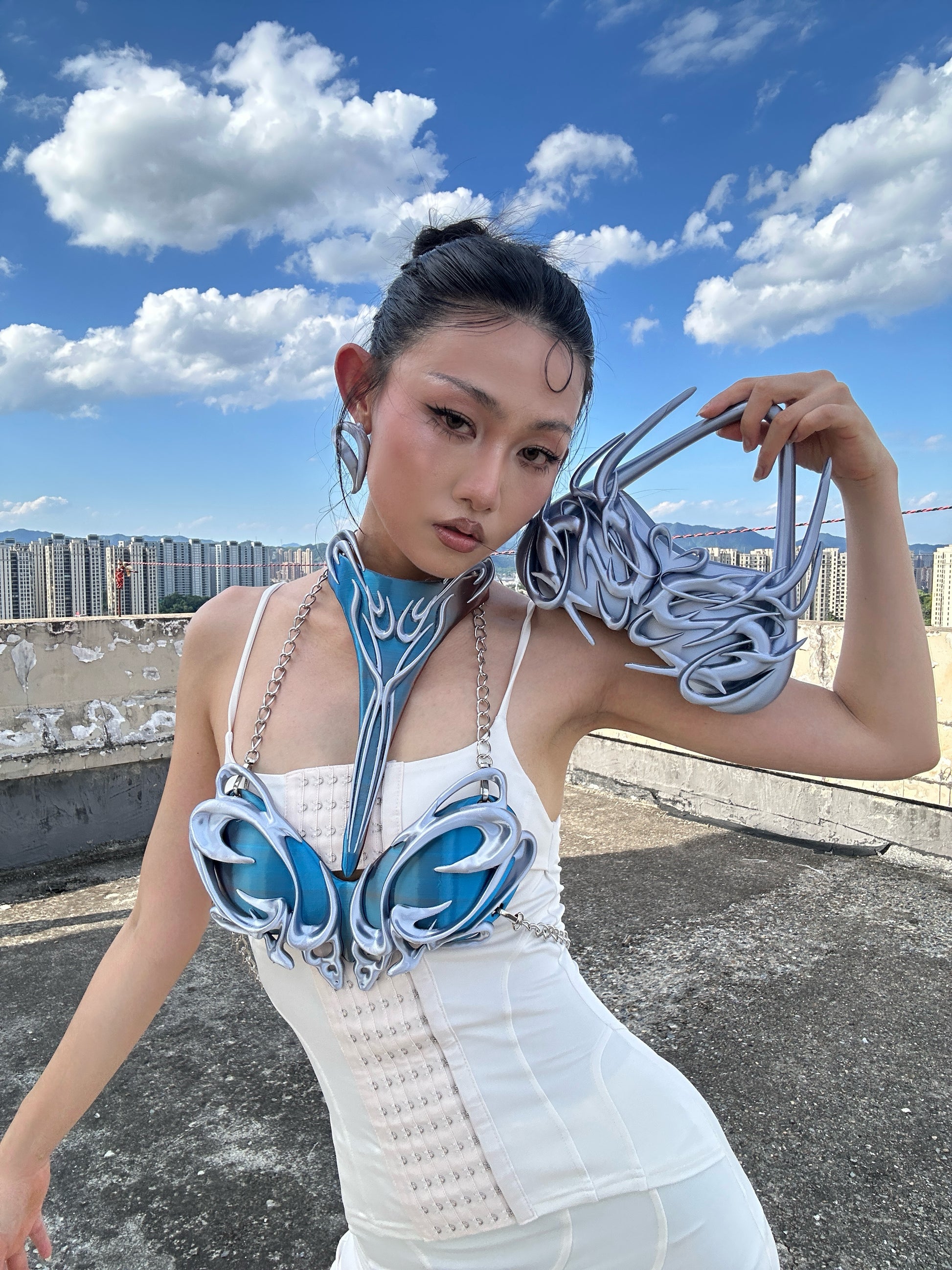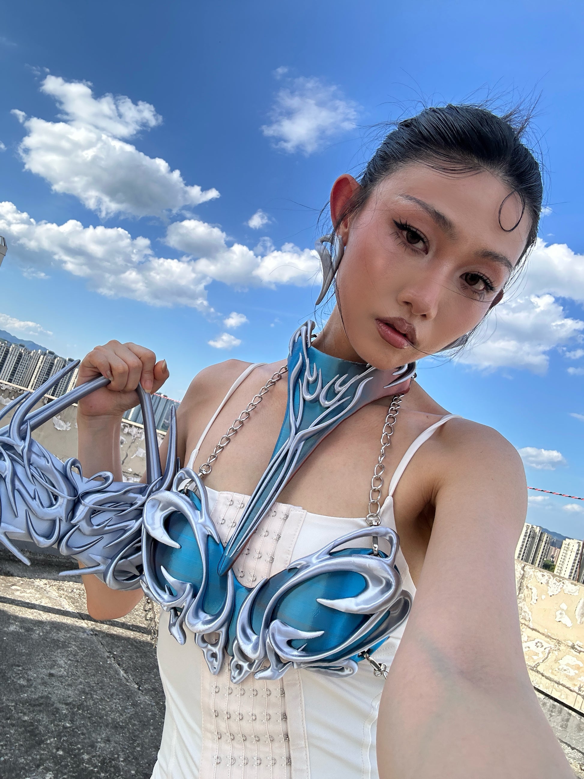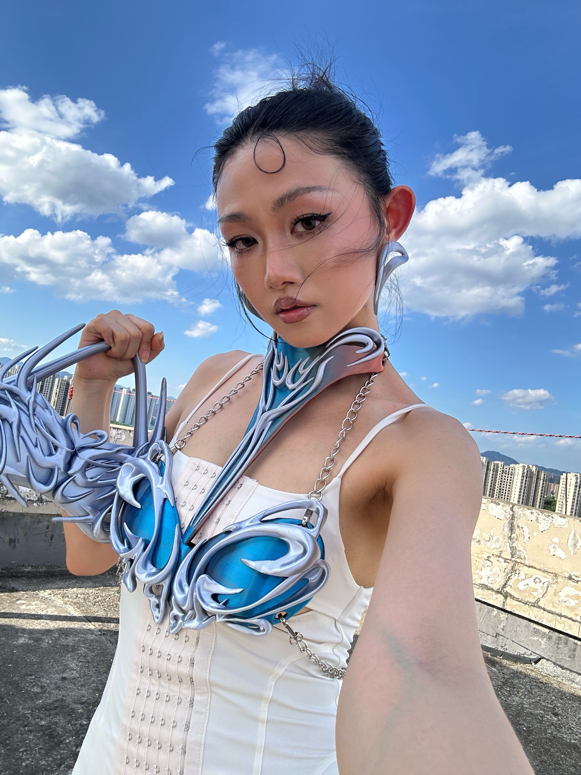 YALA.Lab|3Dprinting Future-tech style multi-color extra-long choker